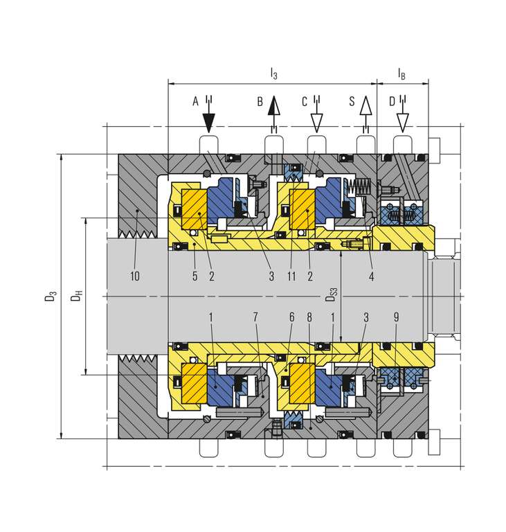 The PDGS51 was developed for use in extreme high pressure applications. Adapted sliding faces and an innovative design of the shaft sleeve allow pressures up to 450 bar (6.525 PSI) and more. Most of these seals are successful in use in compressors for gas injection.